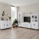 Composición para salón de 261 cm compuesta por vitrina de 4 puertas, bajo tv de 1 puerta y 1 cajón, estante de pared con trasera y bufet de 1 puerta modelo Cube 8. Color blanco/latina.