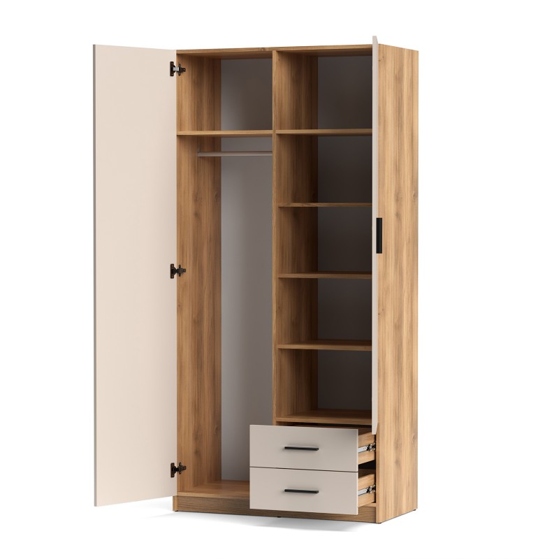 El Armario 2 Puertas 2 Cajones Elba ofrece el equilibrio perfecto entre diseño moderno, capacidad y funcionalidad. Su estructura práctica con dos puertas y dos amplios cajones permite mantener la ropa, complementos o textiles perfectamente organizados, adaptándose a dormitorios, vestidores o habitaciones auxiliares.