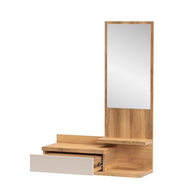 El Recibidor Vertical Elba es la opción perfecta para quienes buscan organización y estilo en la entrada del hogar. Su diseño moderno y vertical aprovecha el espacio al máximo, ofreciendo una superficie práctica para dejar objetos cotidianos y un espejo que amplía visualmente el ambiente.