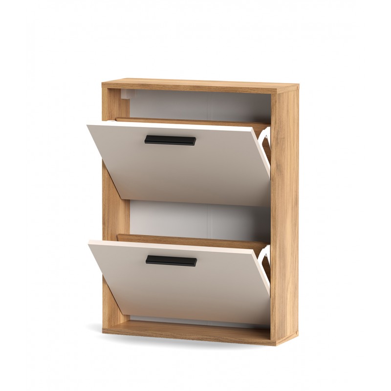 El Zapatero 2 Puertas Elba es la solución perfecta para mantener el calzado organizado, oculto y siempre accesible. Su diseño moderno y elegante encaja en cualquier recibidor, dormitorio o pasillo, aportando orden sin ocupar mucho espacio.