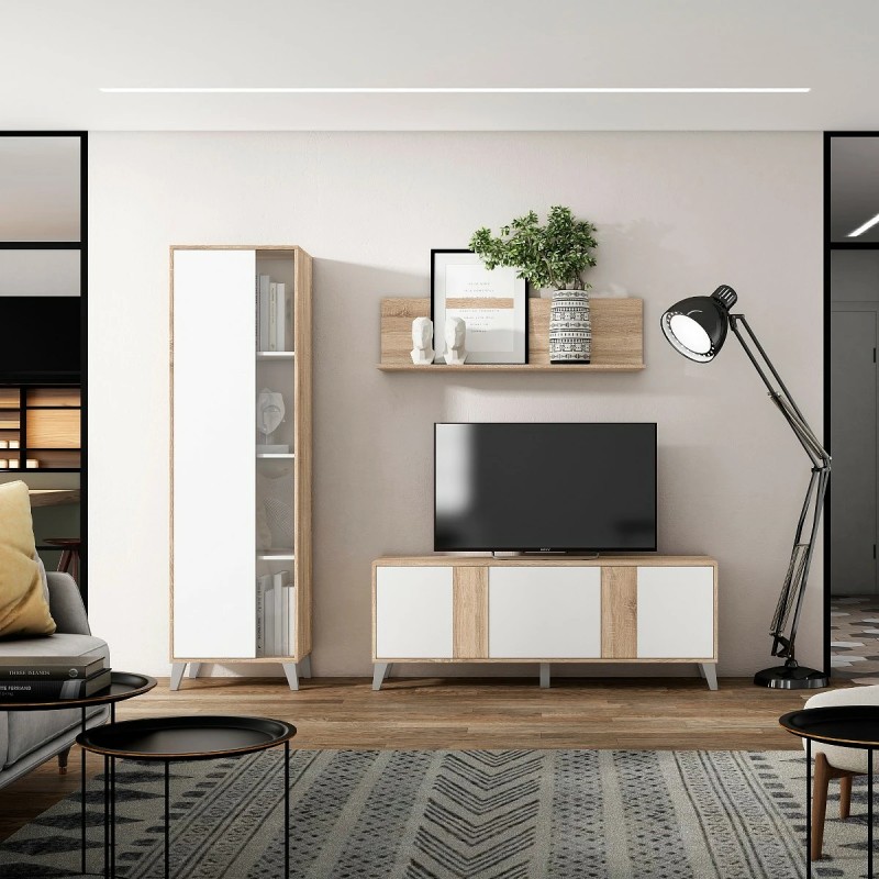 Salón Completo Neo Vitrina alta + Mueble tv + Galería